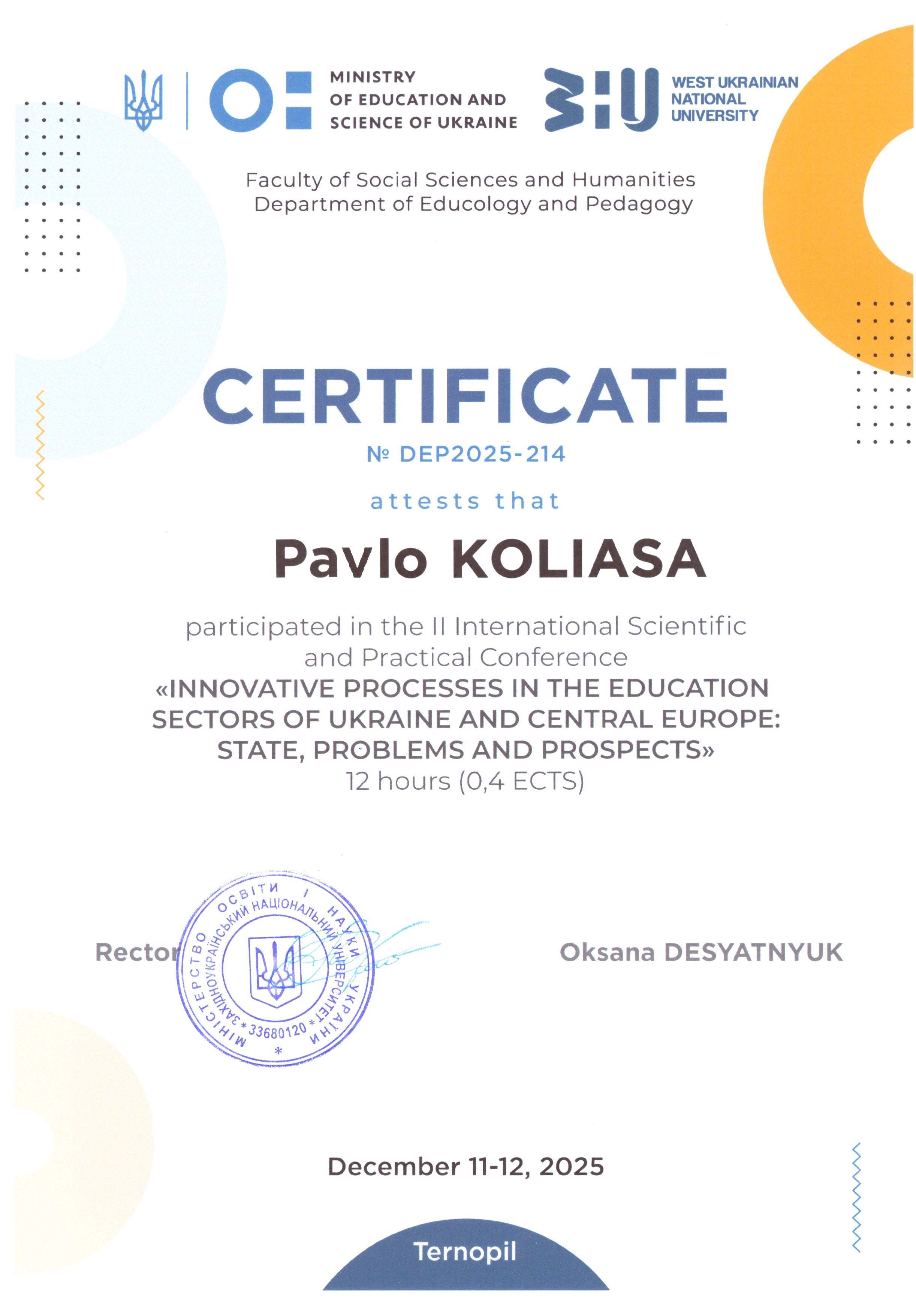 p.koliasa@wunu.edu.ua, бульвар Т. Шевченка, 9, корпус № 10, каб. 21