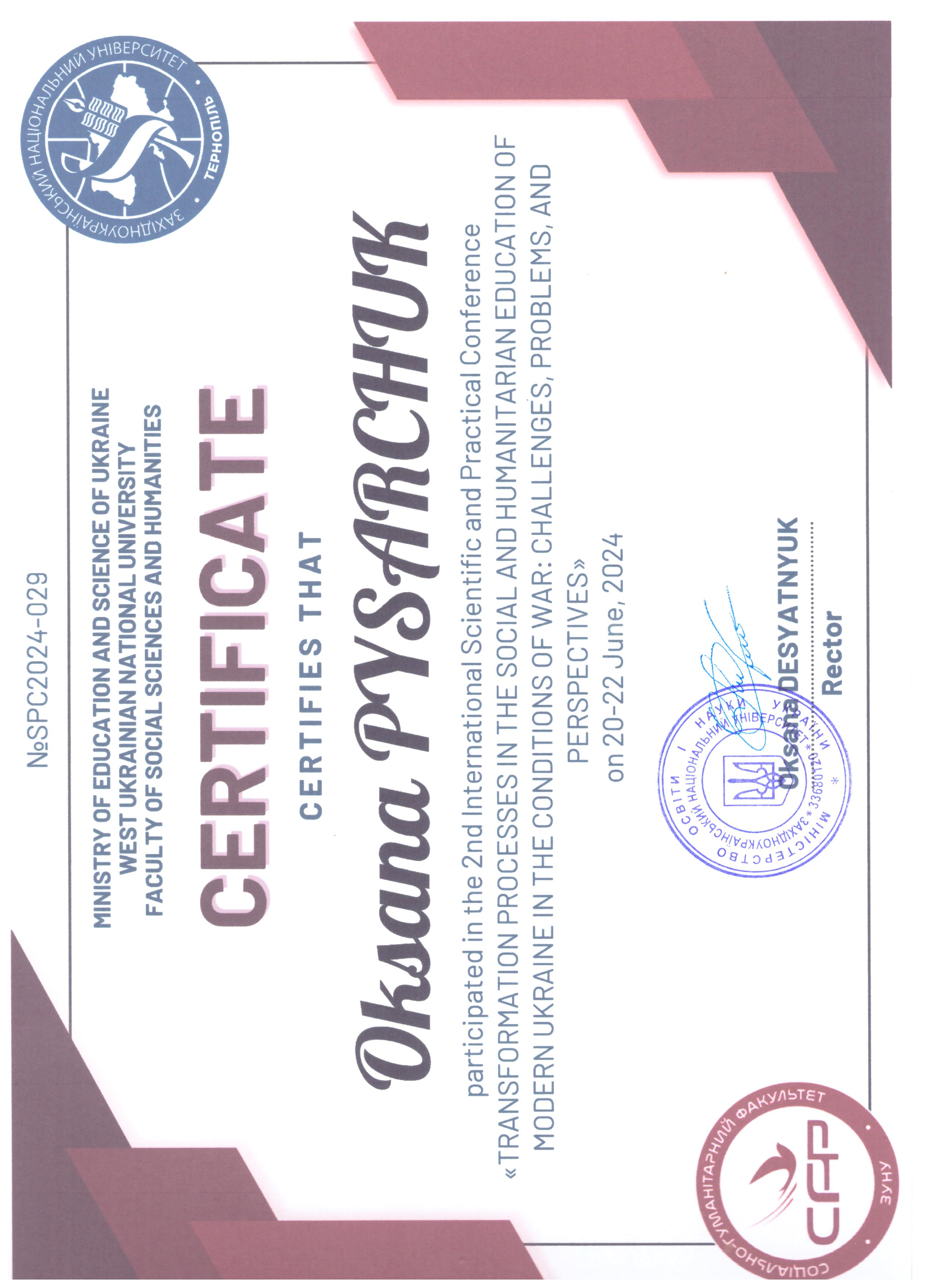 e-mail: o.pysarchuk@wunu.edu.ua, бульвар Т. Шевченка, 9, корпус № 10, каб. 21